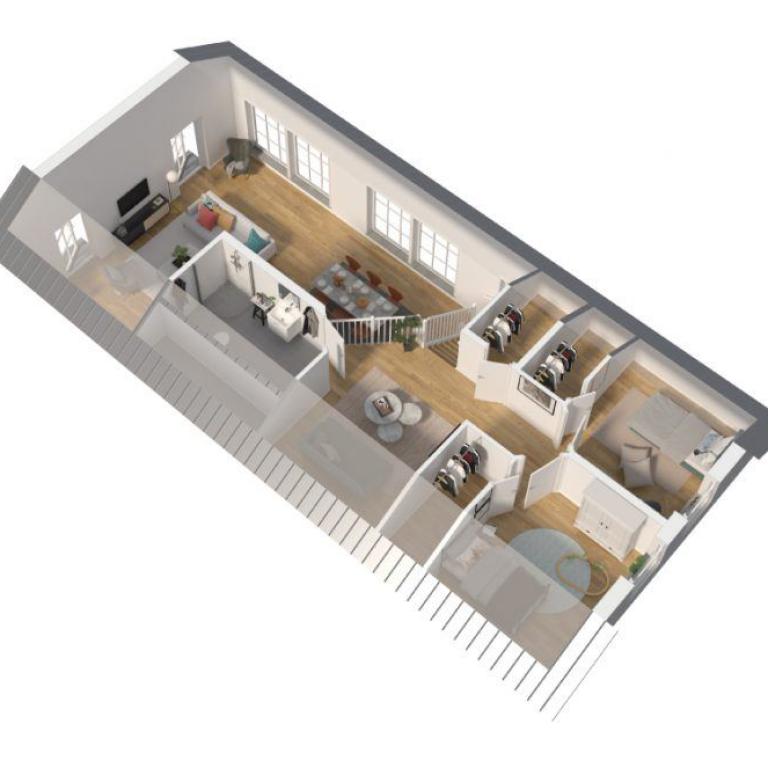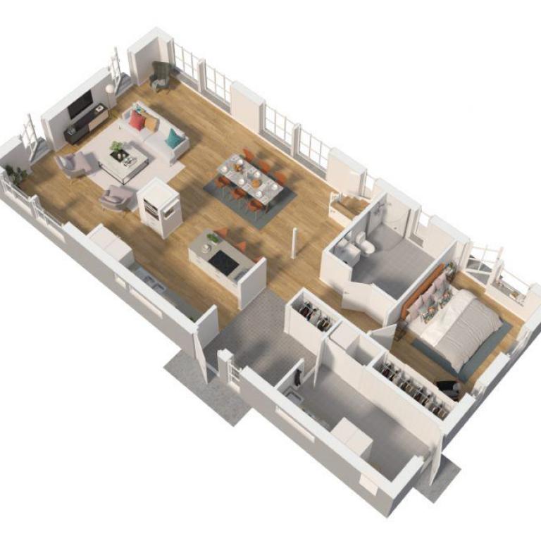 Sobald man zur Haustür hereinkommt, begegnen einem Weite und Offenheit. Küche, Essbereich und Wohnzimmer bilden ein wundervolles offenes Ensemble. Durch das Pfettendachs entsteht ein Raumgefühl, das kaum zu übertreffen ist.