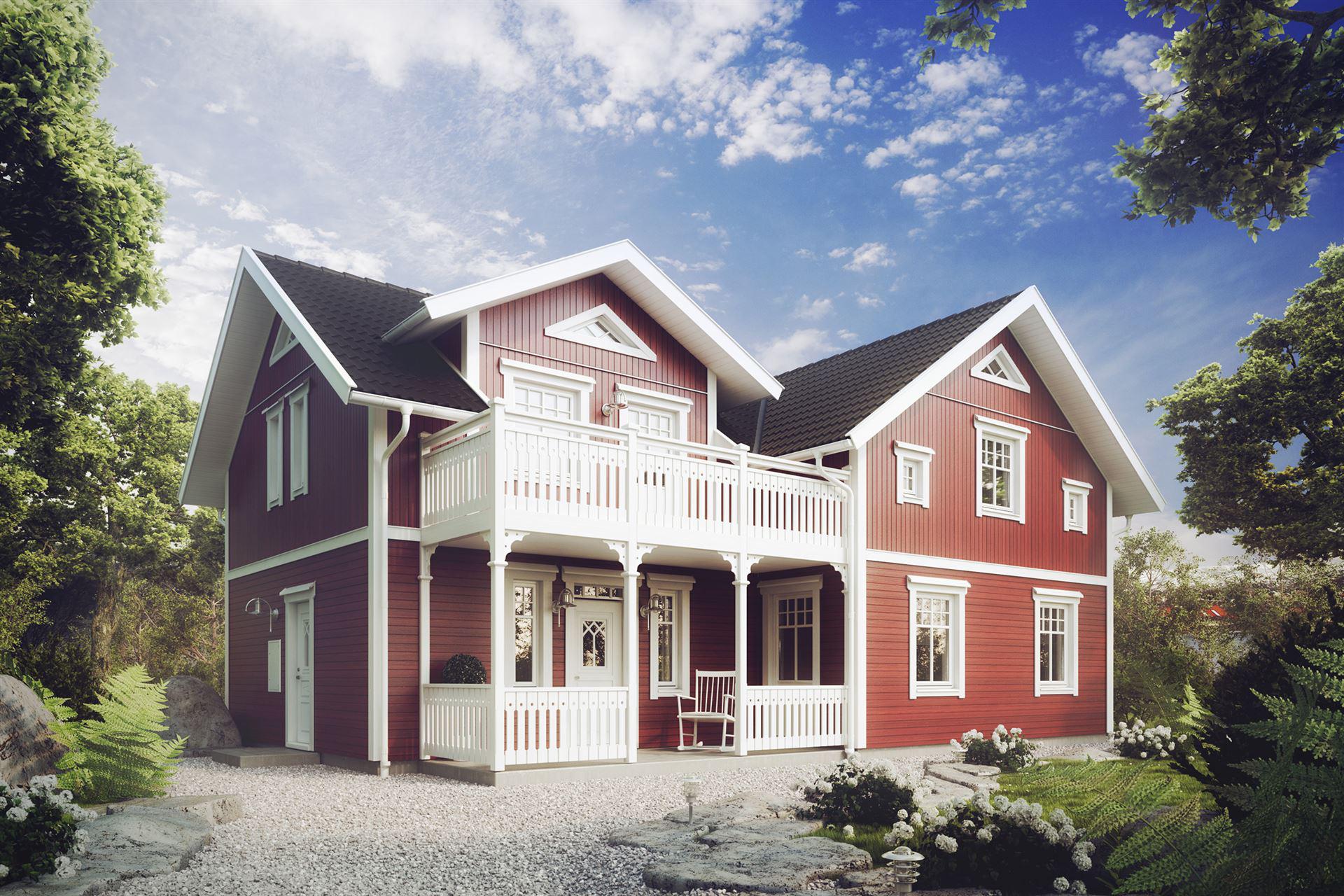 Dieses schwedische Landhaus mit seiner Drei-Giebelkonstruktion und der vorgesetzten Veranda mit Balkon verleihen dem Haus eine besondere Note und unterstreichen durch perfekte Proportionen die harmonische Architektur schwedischer Landhäuser. Der gut durchdachte Grundriss ermöglicht einer vierköpfigen Familie großzügigen Lebensraum.