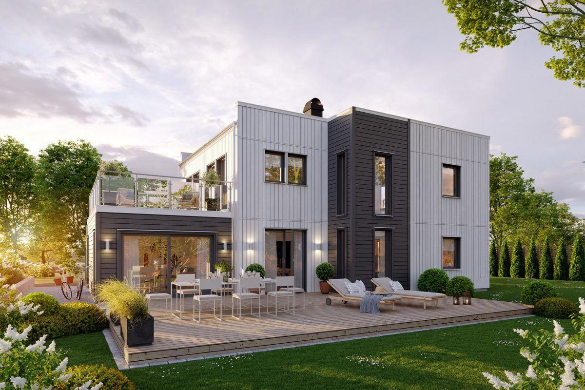 Vom Gemeinschaftsraum, den in Schweden üblichen „Allrum“, gelangt man in die drei Schlafräume und dem Badezimmer. Das Platzangebot auf dieser Ebene passt zu der Vorstellung die sich der Betrachter, dieser gut durchdachten Planung, macht. Auf kleineren Grundstücken kann die große Terrasse fehlende Grundstücksgröße spielend ausgleichen.