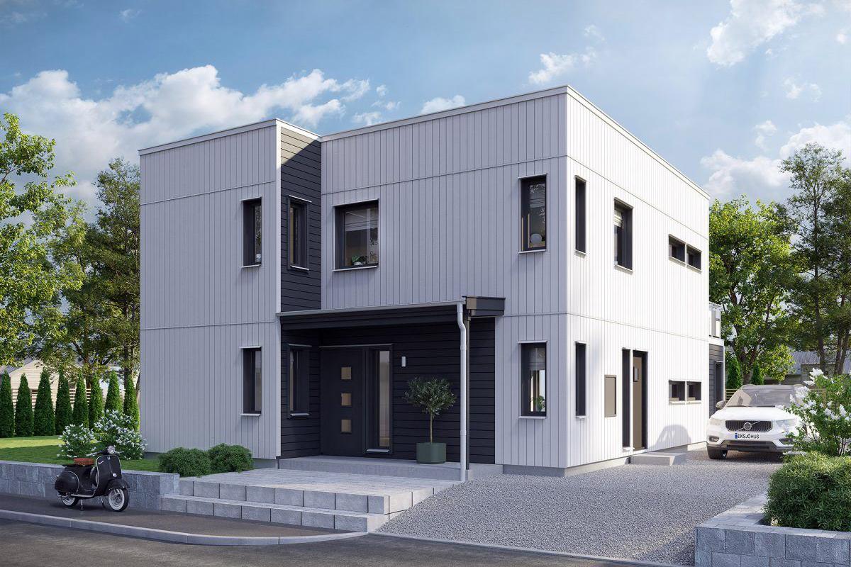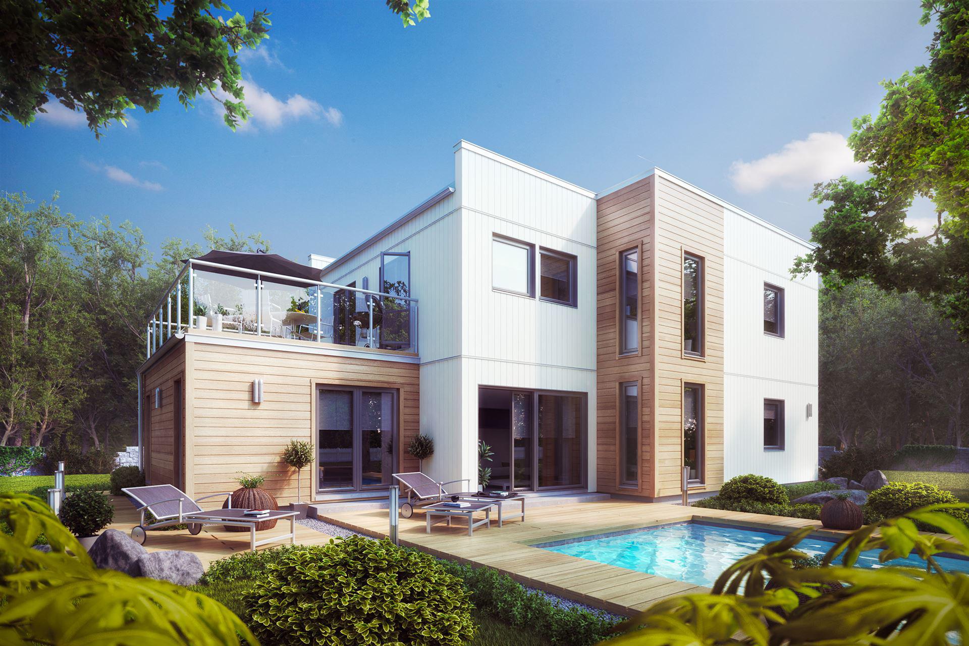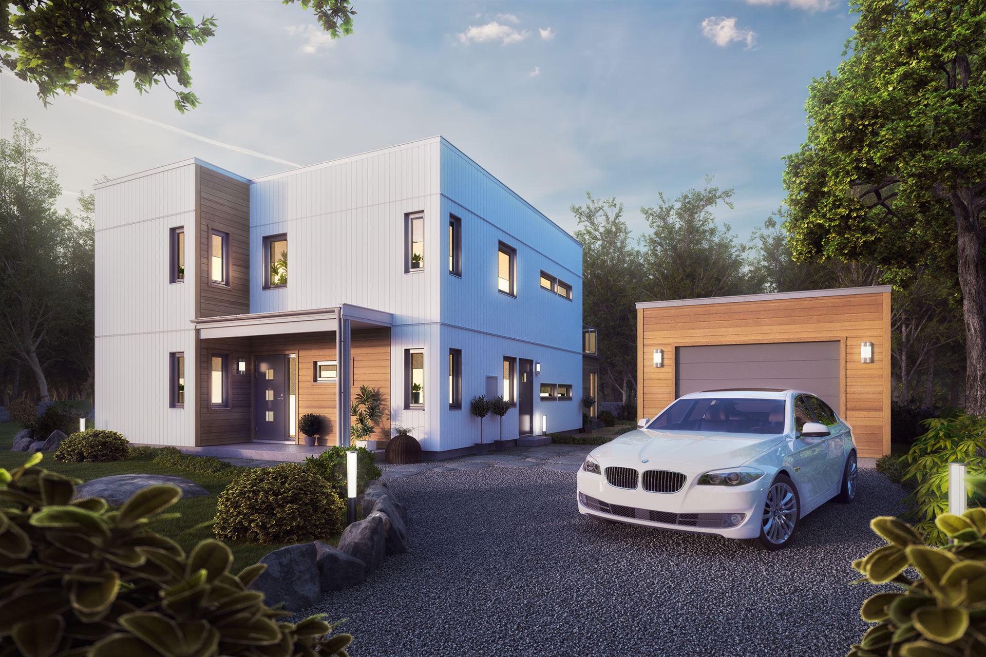 Der hier im Bauhaus-Stil vorgestellte Entwurf setzt Maßstäbe; modern, funktional und schlicht. Klare Linienführungen und geometrische Proportionen sind bei den Anhängern dieser Architektur, nur zwei von vielen Gründen sich für dieses moderne Haus zu entscheiden. Die unterschiedliche Farbgebung der Fassade unterstreicht die kubistische Form der Baukörper mit dem typischen Flachdach. Eine atemberaubende, zeitlose Architektur für Individualisten.