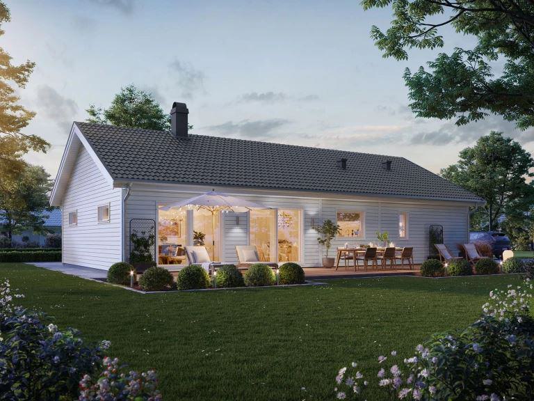 Ein einladender Eingang verleiht dem Prio 129 Traditional ein Gefühl von Sicherheit und schwedischem Architekturerbe. Der Prio 129 ist perfekt für die kleinere Familie. Es ist auch wirklich gut für diejenigen unter Ihnen, die heute in einem großen Haus leben und davon träumen, weniger Räume zu reinigen, aber dennoch viel Platz für gesellschaftliche Veranstaltungen zu haben. Wenn Sie sich für ein Walmdach entscheiden, erhalten Wohnzimmer und Küche ein noch größeres Raumgefühl!