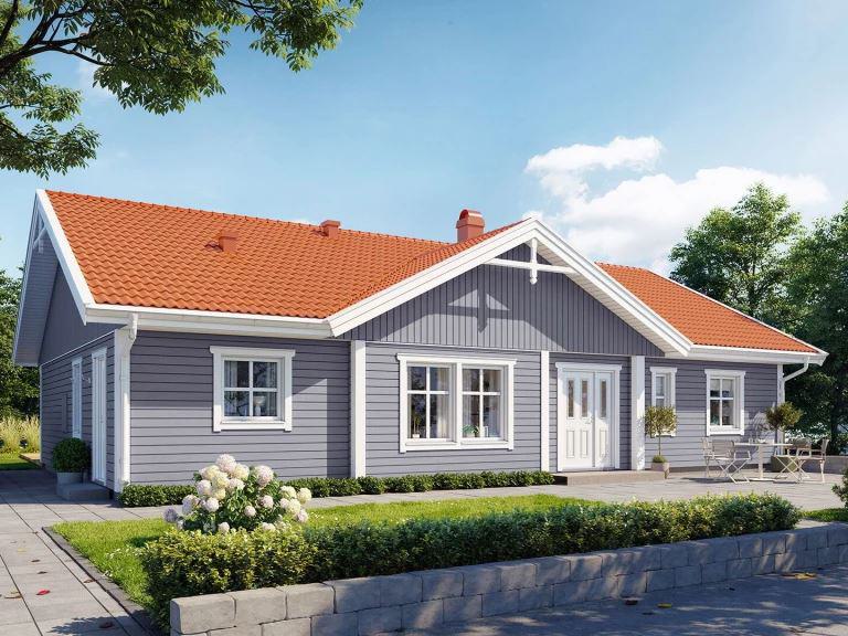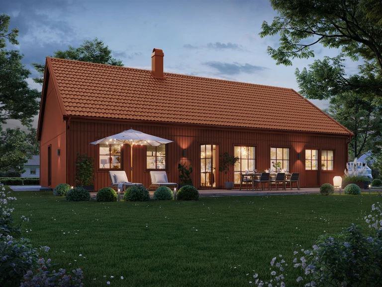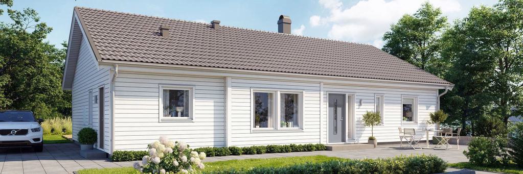 Mit Balken, weißen Knoten und einem einladenden Eingang spiegelt der Prio 141 Traditionell Sicherheit und schwedisches architektonisches Erbe wider. Prio 143 ist nicht ohne Grund unser meistverkauftes Haus. Hier wird jeder Quadratmeter sinnvoll genutzt, der sowohl für große als auch für kleine Familien mit Kindern geeignet ist. Die 4 Schlafzimmer des Hauses sind aufgeteilt, zwei für Erwachsene und zwei für Kinder oder Gäste an jedem Ende des Hauses. In der Mitte werden Wohnzimmer und Küche zum natürlichen Treffpunkt.
