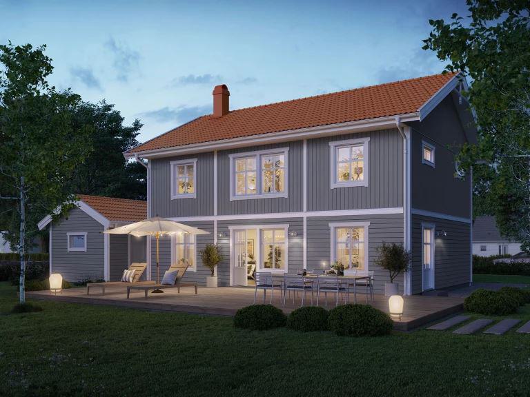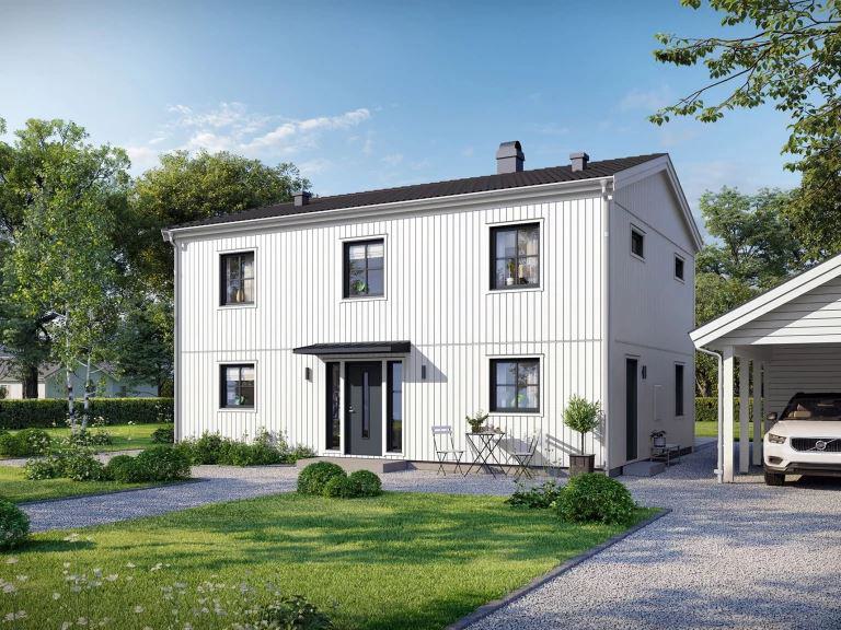 Mit weißen Ästen und einer wunderschönen Veranda als krönenden Abschluss spiegelt der Prio 158 Traditionell Sicherheit und schwedisches architektonisches Erbe wider. Prio 158 ist ein großzügiges zweistöckiges Haus, das für die soziale Familie konzipiert ist, die viel Platz möchte. Die zentral angeordnete Treppe schafft ein zusätzliches Gefühl von Raum und Volumen. Im Obergeschoss gibt es Platz für vier Schlafzimmer und zwei große Kleiderschränke mit viel Platz.