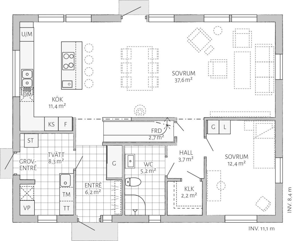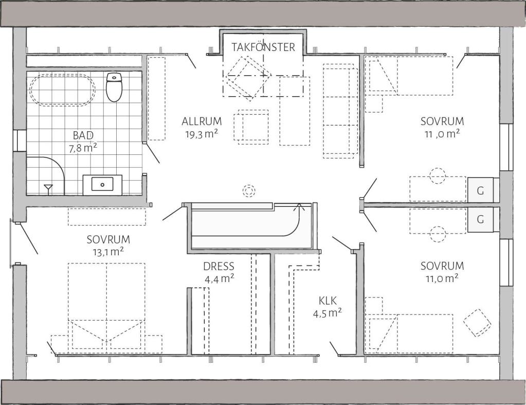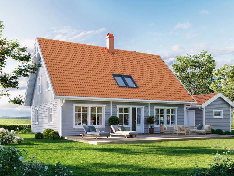 Mit Balken, weißen Knoten und einem schönen Eingang, der die Vorderseite ziert, spiegelt der Prio 165 Traditionell Sicherheit und schwedisches architektonisches Erbe wider. Im 1,5-stöckigen Haus Prio 165 gibt es viel Licht und Platz. Vom offenen Grundriss zwischen Küche und Wohnzimmer bis hin zu den 3 großzügigen Schlafzimmern im Obergeschoss. Für noch mehr Lichteinfall in Küche und Wohnzimmer wählen Sie bodenhohe Fenster und Türen nach hinten.