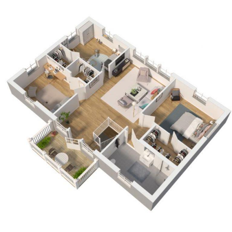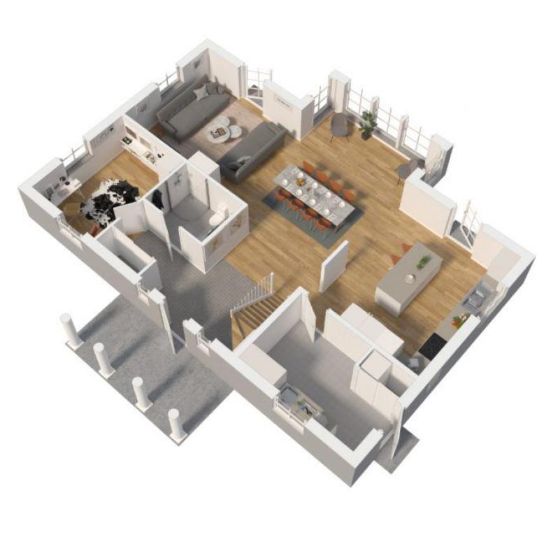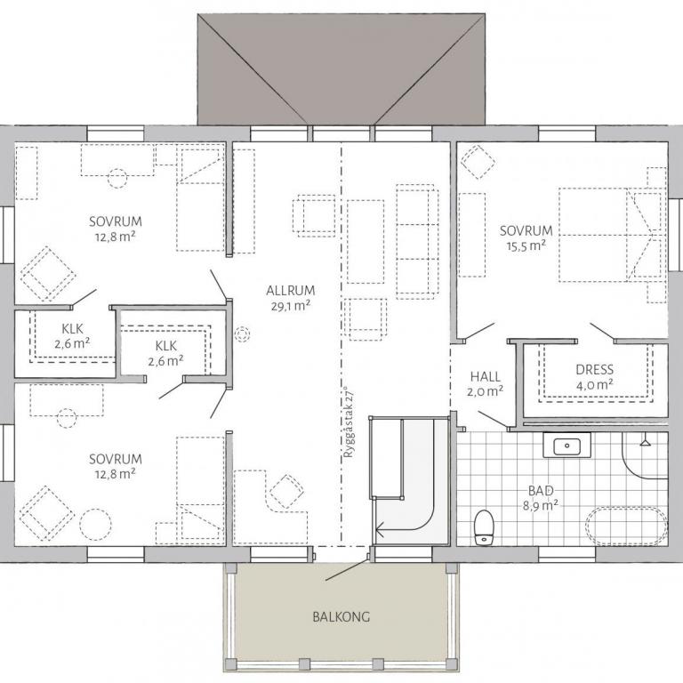 Der harmonische Gesamteindruck dieser stattlichen Villa wird maßgeblich durch die symmetrisch angeordneten Fenster bestimmt. Ein weißer Balkon und weiße Fenstereinfassungen bilden einen schönen Kontrast. Die klassische Linienführung setzt sich auch im Inneren des Hauses bei der Grundrissgestaltung fort. Der Eingangsbereich mit seinen Säulen unterstreicht den Anspruch, eine Villa, für den anspruchsvollen Bauherren, zu sein. Das in zweigeschossiger Bauweise erstellte Gebäude kann mit unterschiedlichen Materialien für die Fassadengestaltung beeindrucken. Die hier gezeigte Holzfassade ist klassisch -schwedisch-.