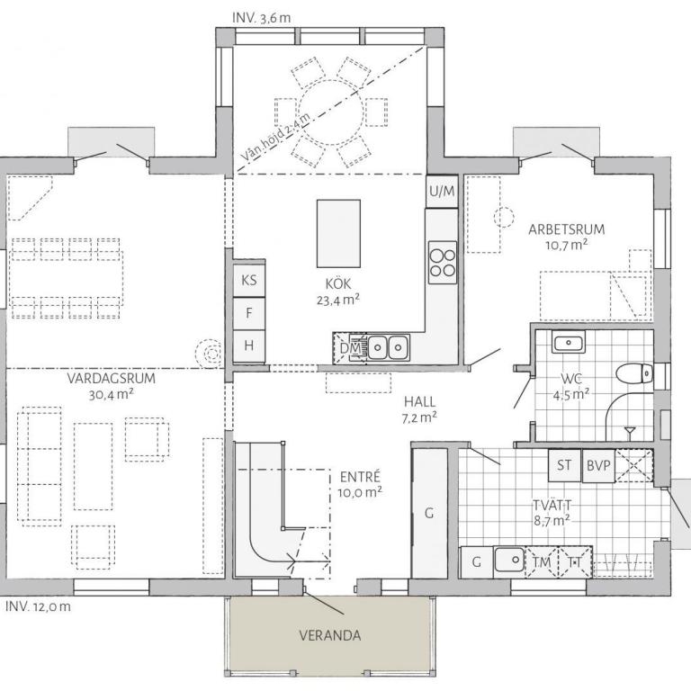 Ein Landhaus, in einem Baustil, dessen Wurzeln im zweiten Teil des 18. Jahrhunderts zu finden sind. Um die Jahrhundertwende waren diese Häuser mit ihrer waagerechten, gefasten Spundschalung charakteristisch für diese Zeit. Die ansprechend eingefassten Fenster und die Spiegeltüren drücken auch heute noch die Freude am Tischlerhandwerk aus. In Schweden