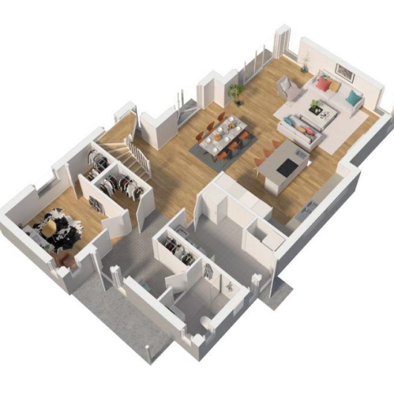 Der hier im Bauhaus-Stil vorgestellte Entwurf setzt Maßstäbe; modern, funktional und schlicht. Klare Linienführungen und geometrische Proportionen sind bei den Anhängern dieser Architektur, nur zwei von vielen Gründen sich für dieses moderne Haus zu entscheiden. Die unterschiedliche Farbgebung der Fassade unterstreicht die kubistische Form der Baukörper mit dem typischen Flachdach. Eine atemberaubende, zeitlose Architektur für Individualisten.