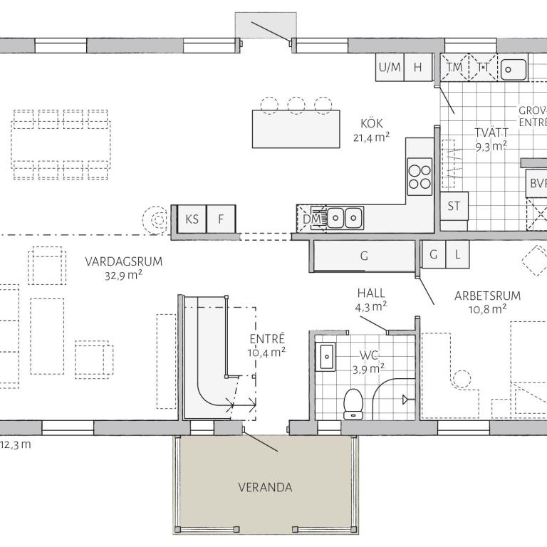 Die alten Traditionen findet man in unseren klassischen Landhäusern. Tallbacken ist ein Haus, das die Romantik vergangener Jahrhunderte lebendig werden lässt, gleichzeitig aber mit allen Vorteilen und Bequemlichkeiten eines modernen Hauses daher kommt. Wer Holzhäuser mag, wird dieses Haus lieben. Der solide Charakter wird durch die Profilholzfassade mit Deckelschalung, die dekorativen Details der Giebelspitzen, die schönen Einfassungen der Fenster und den äußerst eleganten Eingang hervorgehoben.